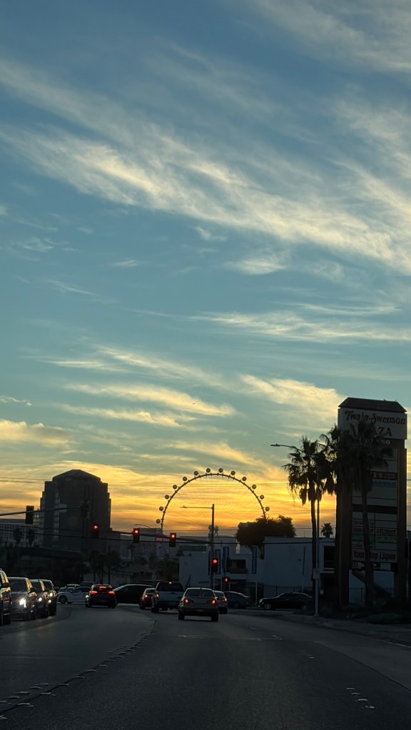 It was evening when we arrived in Las Vegas, so there wasn’t much to see other than the usual landmarks. Of course, who could miss the iconic Welcome to Fabulous Las Vegas sign, proudly displayed along the hallway as we walked toward the exit? Its glowing neon lights and vintage design welcomed us with a sense of excitement and possibility.